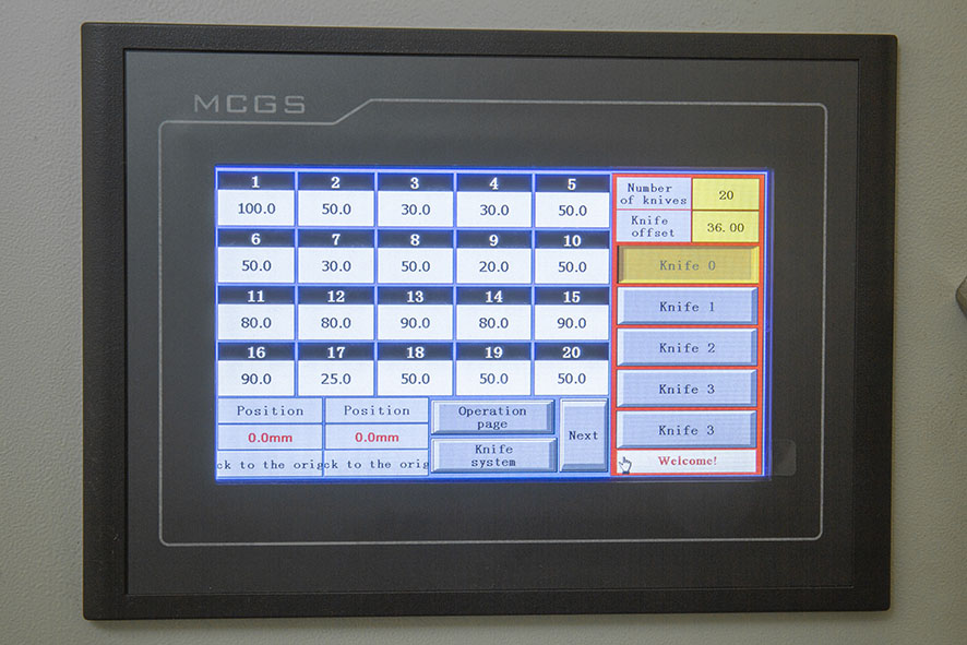 4. Automatic tool adjustment system (input the slitting specifications you need to arrange the tools at one time), and the automatic discharge device for round knife longitudinal cutting waste.